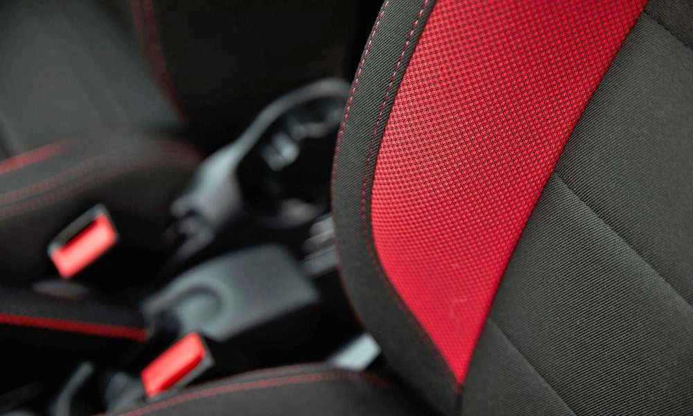 • Обивка сидений ткань. Цвет черный с красными элементами